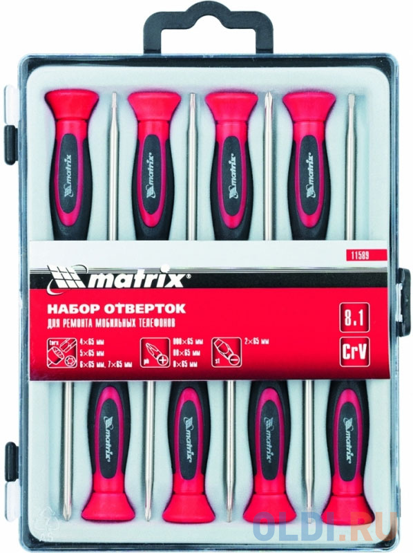 Набор отверток MATRIX 11589 для точных работ с мобильными телефонами 8шт crv