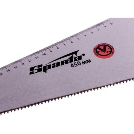 Ножовка по дереву, 450 мм, 7-8 TPI, зуб-2D, каленый зуб, линейка, двухкомпонентная рукоятка// Sparta