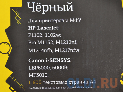 Данная модель предназначена для использования в HP TC-H85A LaserJet P1102/1102w/Pro M1132/M1212nf/M1214nfh/Canon i-SENSYS LBP6000 Cartrige 725.