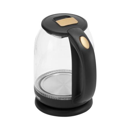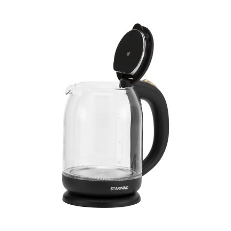 Прочие особенности и свойстваЭлектрический чайник STARWIND SKG1052 благодаря стильному современному дизайну позволит с легкостью вписаться в интерьер любой кухни и будет гармонично сочетаться с другими бытовыми приборами. Уникальность модели заключается в стеклянном корпусе, что не только позволяет наблюдать за процессом кипения воды внутри прибора и с легкостью контролировать количество воды внутри, но и обеспечивает абсолютную безопасность, так как стекло при нагреве не выделяет совершенно никаких вредных веществ. Но не все элементы изготовлены из стекла, так как это было бы не только не практично, но и небезопасно. Таким образом, ручка, крышка и подставка выполнены из пластика черного цвета. Тип пластика, который используется в производстве, абсолютно безопасен и не выделяет вредных веществ при нагреве данным прибором. Продуманный и недорогой чайник имеет еще ряд преимуществ, среди которых: