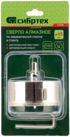 Сверло по керамической плитке и стеклу, 65 х 55 мм, 6 гр.хв-к, с центр. сверлом// Сибртех