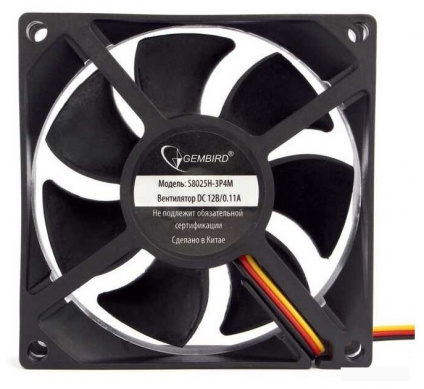 Gembird Вентилятор 80x80x25, гидрод., тихий, 3 pin / 4pin Molex, провод 30 см (S8025H-3P4M)