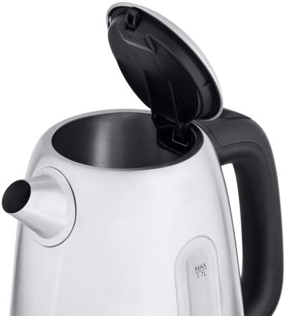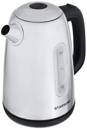 Прочие особенности и свойстваИнтересный дизайн, продуманная конструкция, качественные материалы – все это позволит чайнику STARWIND SKS3210 составить реальную конкуренцию вашим любимым бытовым приборам на кухне и вырваться в лидерские позиции. Корпус электрического чайника выполнен из нержавеющей стали и имеет матовое серебристое покрытие. Ручка и подставка изготовлены из черного жаропрочного пластика. Для точного определения уровня заполненной воды предусмотрено смотровое окошко, на которое нанесена мерная шкала: 0,5 л, 1 л, 1,7л. В STARWIND SKS3210 предусмотрен только один температурный режим, для запуска которого используется кнопка, расположенная на ручке прибора. Кнопка оснащена световым индикатором и когда прибор находится в рабочем состоянии, кнопка горит красным цветом.
