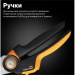 Прочие особенности и свойства Контактный секатор Fiskars Plus™ P741 идеально подходит для обрезки сухих веток с максимальным диаметром 24 см. Механизм Power-Level™ увеличивает силу резания, необходимую для работы. Оборудован прочной наковальней, благодаря которой не давит а срезает ветви ровно. Лезвие с антикоррозийным покрытием снижает трение и увеличивает эффективность работы, обеспечивая гладкий и чистый срез. Эргономичная ручка FiberComp™ с покрытием SoftGrip™ снижает утомляемость и повышает комфорт работы.