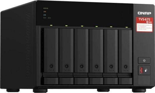 SMB QNAP TVS-675-8G NAS, 6-tray w/o HDD, 2xM.2 SSD Slot, 1xHDMI-port. CPU 8-сore 64-bit x86 KX-U6580 2.5 GHz , 8GB DDR4 (1 x 8GB) up to 64GB (2 x 32GB), 2x 2.5 Gigabit LAN