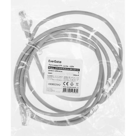 Exegate EX286383RUS Патч-корд ExeGate UTP-RJ45-RJ45-5e-2M-LSZH-GY, UTP, cat.5e, LSZH, 2м, серый