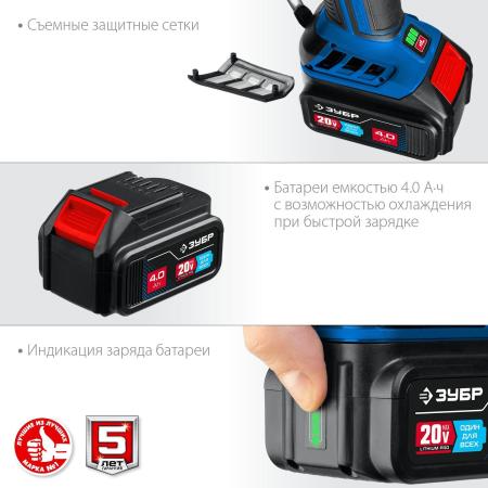 Прочие особенности и свойстваВысокий крутящий момент Зубр 20В AB-125-42