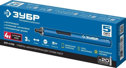 ЗУБР Профессионал ОТР-4 Н20 отвертка аккумуляторная 4 Vmax для точных работ с набором 20 бит