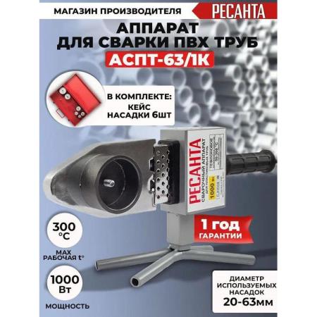 Сварочный аппарат для пластиковых труб Ресанта АСПТ-63/1К раструбная 1кВт (кейс в комплекте)