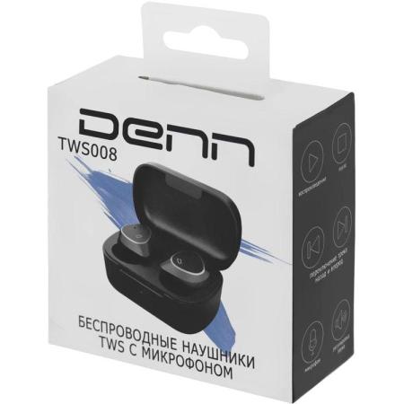 Наушники DENN TWS008, Bluetooth, вкладыши, черный