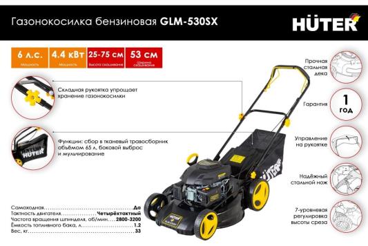 Газонокосилка бензиновая Huter GLM-530SX, 53см, самоходная [70/3/16]