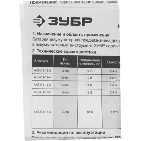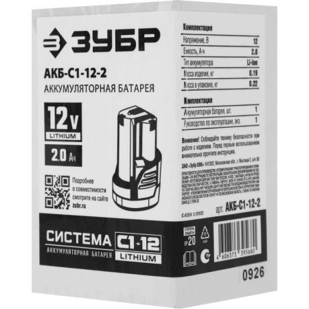 Батарея аккумуляторная Зубр АКБ-С1-12-2 12В 2Ач Li-Ion