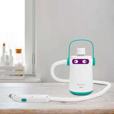 Пароочиститель ручной Kitfort КТ-9109-3 1000Вт белый/бирюзовый