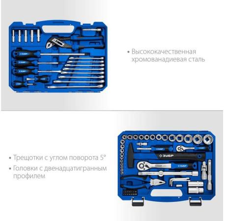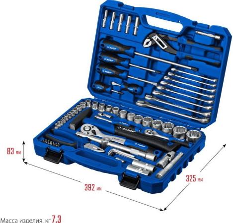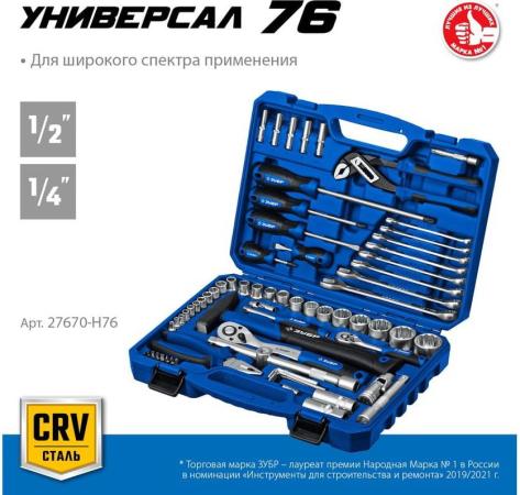 ЗУБР Универсал-76, 76 предм., (1/2?+ 1/4?), универсальный набор инструмента, Профессионал (27670-H76)