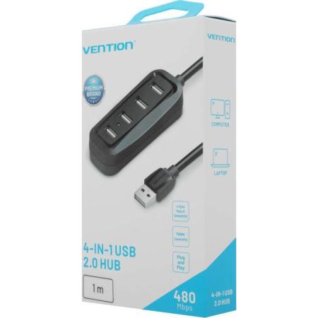 Концентратор Vention USB 2.0 на 4 порта Черный - 1м.
