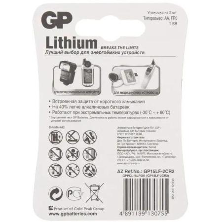 AA Батарейка GP Lithium 15LF FR6, 2 шт.