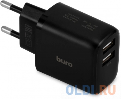 Сетевое зарядное устройство Buro BUWH1, 2xUSB, 15.5Вт, 3.1A, черный [buwh15s200bk]