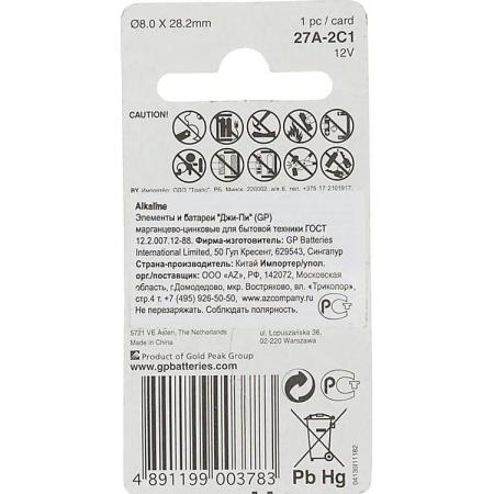 MN27 Батарейка GP Super Alkaline 27AF, 1 шт.