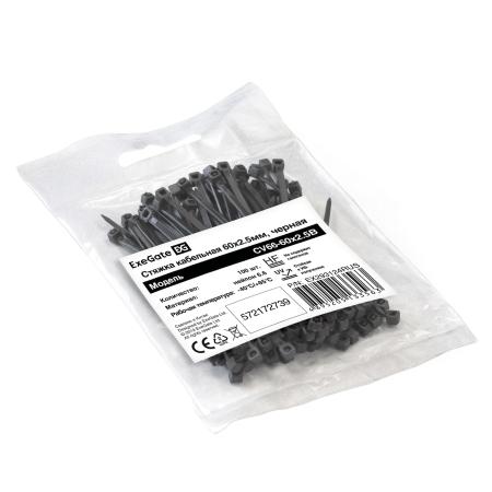 Стяжка (хомут) нейлоновая ExeGate CV66-60x2.5B (нейлон 6.6, 60x2.5мм, неоткрывающаяся, halogen free, -40°C - +85°C, черная, 100 шт)