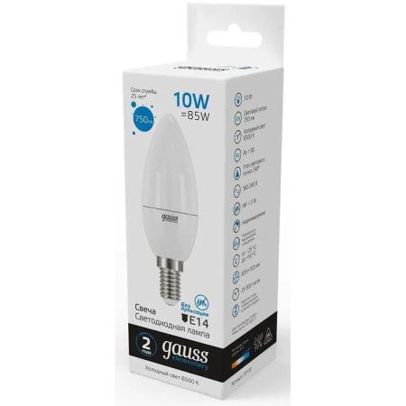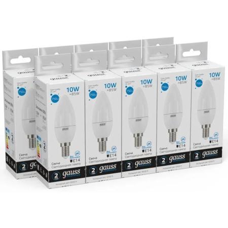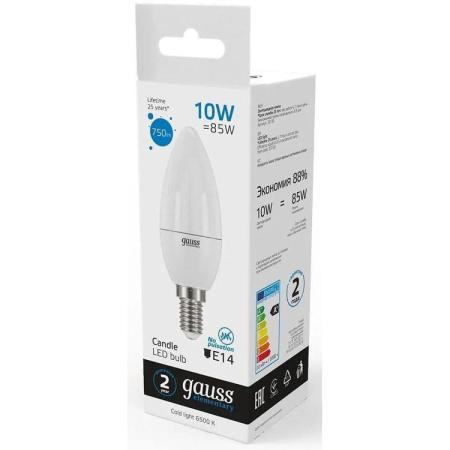 Лампа светодиодная Gauss Elementary 33130 10Вт цок.:E14 свеча 220B 6500K св.свеч.бел.хол. (упак.:10шт)