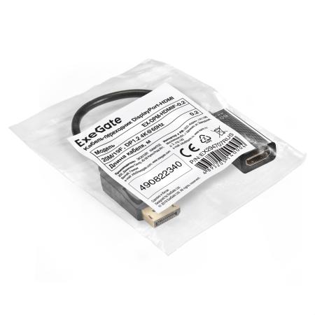 Кабель-переходник DisplayPort-HDMI ExeGate EX-DPM-HDMIF-0.2 (20M/19F, DP1.2 4K@60Hz, 0,2м)