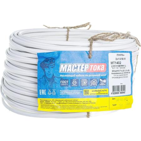 Мастер Тока Провод ПУНПбм 2х1.5 бел 50 м МТ1402/МТП2058