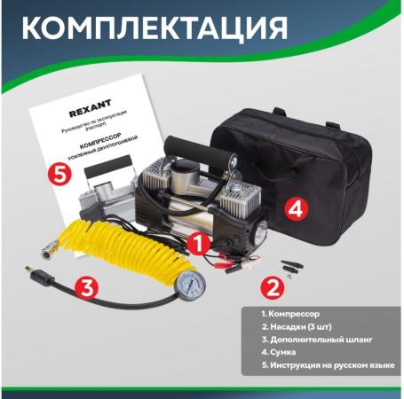 REXANT Компрессор автомобильный усиленный двухпоршневой (75л/мин, 10 атм) 80-0523