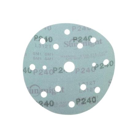 SUNMIGHT Шлифовальный круг L312TV 150мм на липучке, 15 отв, зелёный, P240, 100 шт 53012