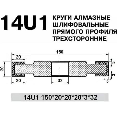 ПАИ Круг алмазный трехсторонний 14U1 150х20х20х20х3х32мм 125/100 БАЗИС АС4 В201 4820235011376