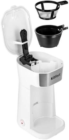 Кофеварка KitFort КТ-7411, капельная, белый / нержавеющая сталь