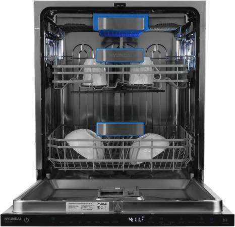 Встраиваемая посудомоечная машина Hyundai HBD 685, полноразмерная, ширина 59.8см, полновстраиваемая, загрузка 16 комплектов, нержавеющая сталь