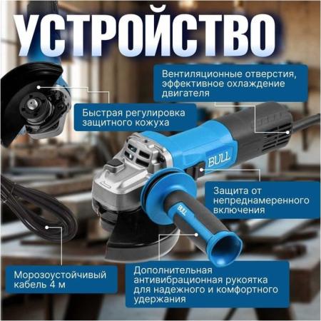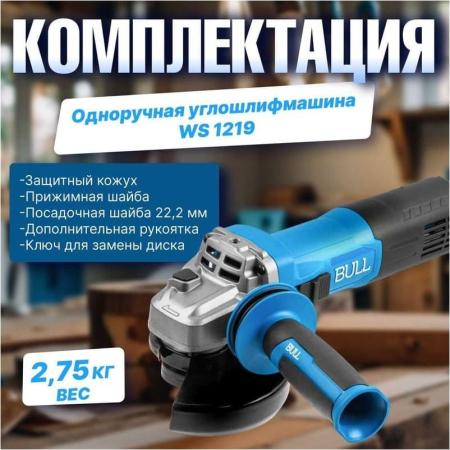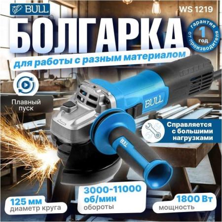 BULL Одноручная углошлифмашина WS 1219 в кор. 125 мм, 1800 Вт, плав. пуск., рег. об, конст. эл. 1333516