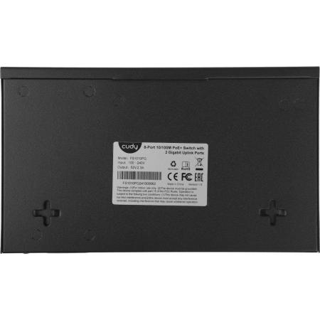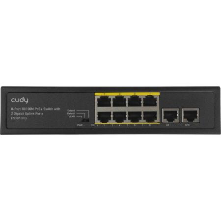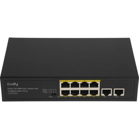 Коммутатор неуправляемый PoE+ Cudy FS1010PG, 8 портов RJ45 10/100 Мбит/с PoE, 2 порта 10/100/1000 Мбит/с,120 Вт, 30 Вт на порт, Extend, металлический