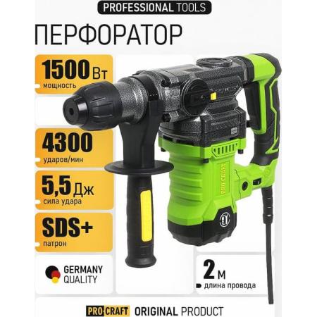 Перфоратор PROCRAFT BH1800 - профессиональная помощница для мастеров и строителей. Благодаря своей мощности 1500 Вт и частоте ударов 4300 уд./мин, этот перфоратор легко справляется с твердыми материалами: сталью до 16 мм, бетоном до 32 мм и деревом до 42 мм.