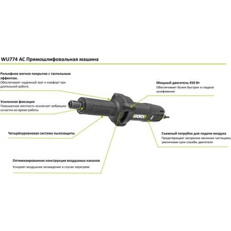 WORX Professional Прямошлифовальная машина450Вт, 6мм WU774