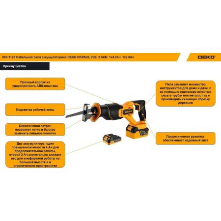 Аккумуляторная сабельная пила DEKO DKHS20 PRO