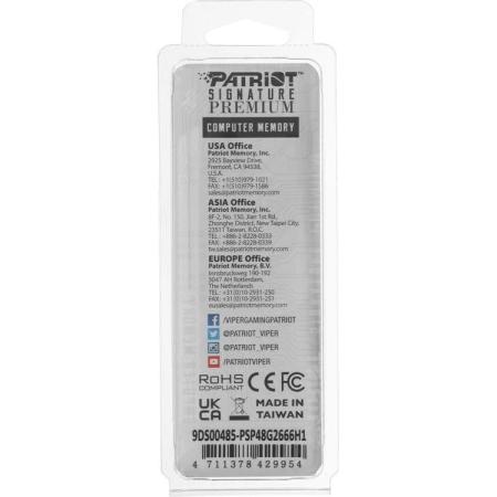 Память DDR4 8GB 2666MHz Patriot PSP48G2666H1 Signature Premium RTL PC4-21300 CL19 DIMM 288-pin 1.2В single rank с радиатором Ret