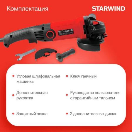 Углошлифовальная машина Starwind AG125LE-1300 1300Вт 11000об/мин рез.шпин.:M14 d=125мм