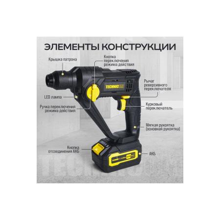 TECHNICOM Перфоратор аккумуляторный, 20В, 4Ач, 900 об/мин, 10-5000 уд/мин, 1,1Дж, SDS, патрон 10мм TC-CH420