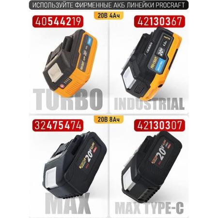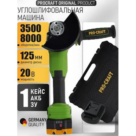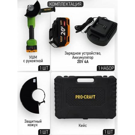 PROCRAFT Углошлифовальная машина аккумуляторная 20В 125мм 3500/6000/8000 об/мин(АКБ 4АЧ+ЗУ) PWA220