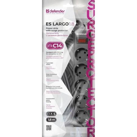 Сетевой фильтр Defender ES largo, 1.8м, черный [99506]