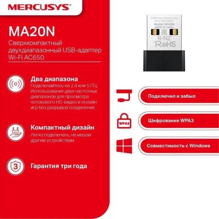 Wi-Fi адаптер MERCUSYS MA20N USB 2.0