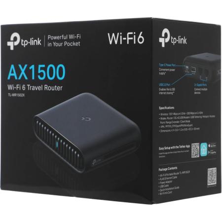 Wi-Fi роутер TP-LINK TL-WR1502X, Wi-Fi 6, AX1500, 2.4/5ГГц, 1 LAN, 1xUSB, черный