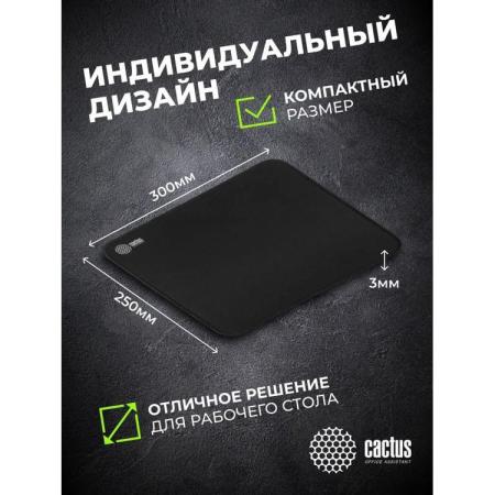 Коврик для мыши Cactus Black черный, ткань, 300х250х3мм [cs-mpc-d01m]