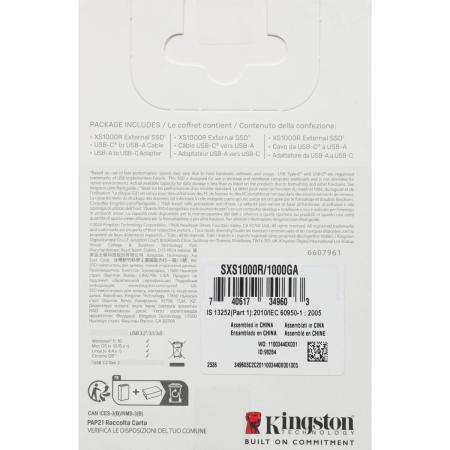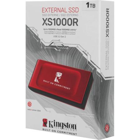 Твердотельный накопитель SSD Kingston External SSD XS1000, 1000GB, Type-C/A, USB 3.2 Gen 2, R/W 1050/1000MB/s, 70x33x14mm, 29g., Red