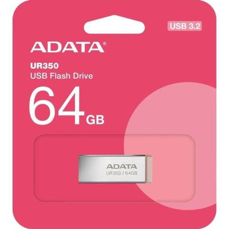 Флешка USB A-Data UR350 64ГБ, USB3.2, серебристый и коричневый [ur350-64g-rsr/bg]