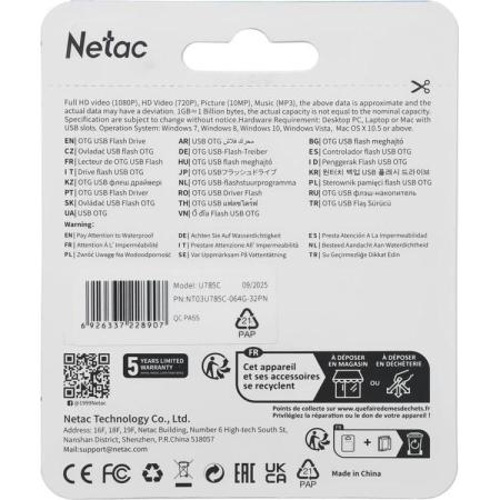 Флешка USB NETAC U785C 64ГБ, USB3.2, серый [nt03u785c-064g-32pn]