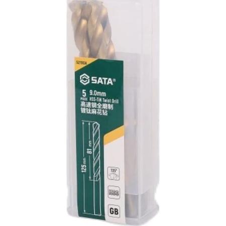 Sata Сверло из быстрорежущей стали с титановым напылением, 9,0 мм, 5 шт 52190A