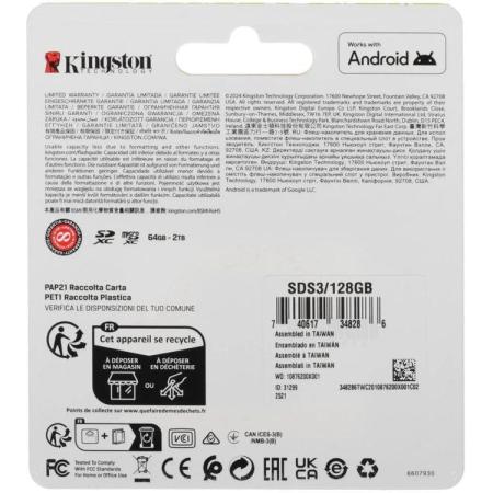 Флеш карта SDXC 128GB Kingston SDS3/128GB Canvas Select Plus V10 w/o adapter