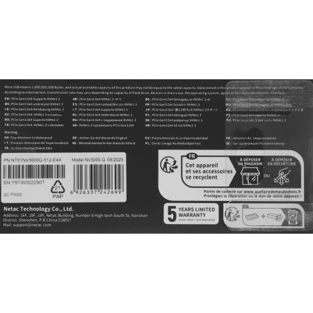 SSD накопитель NETAC NT01NV3000Q-512-E4X 512ГБ, M.2 2280, PCIe 3.0 x4, NVMe, M.2